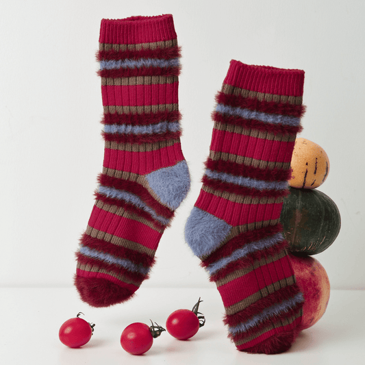 Women's Fuzzy Holiday Stripes Crew Socks